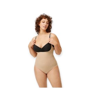 Body-Up sin copas reductor 2 tallas, moldeador y a su vez confortable. Tejido reforzado en abdomen, cintura, parte baja de la espalda, estilizando la figura. En la zona de los glúteos tejido elástico cortado láser con efecto tanga. Ajuste perfecto. Venta por unidades. Presentación en caja con el log 73% Poliamida, 27% Elastano .Color negro.