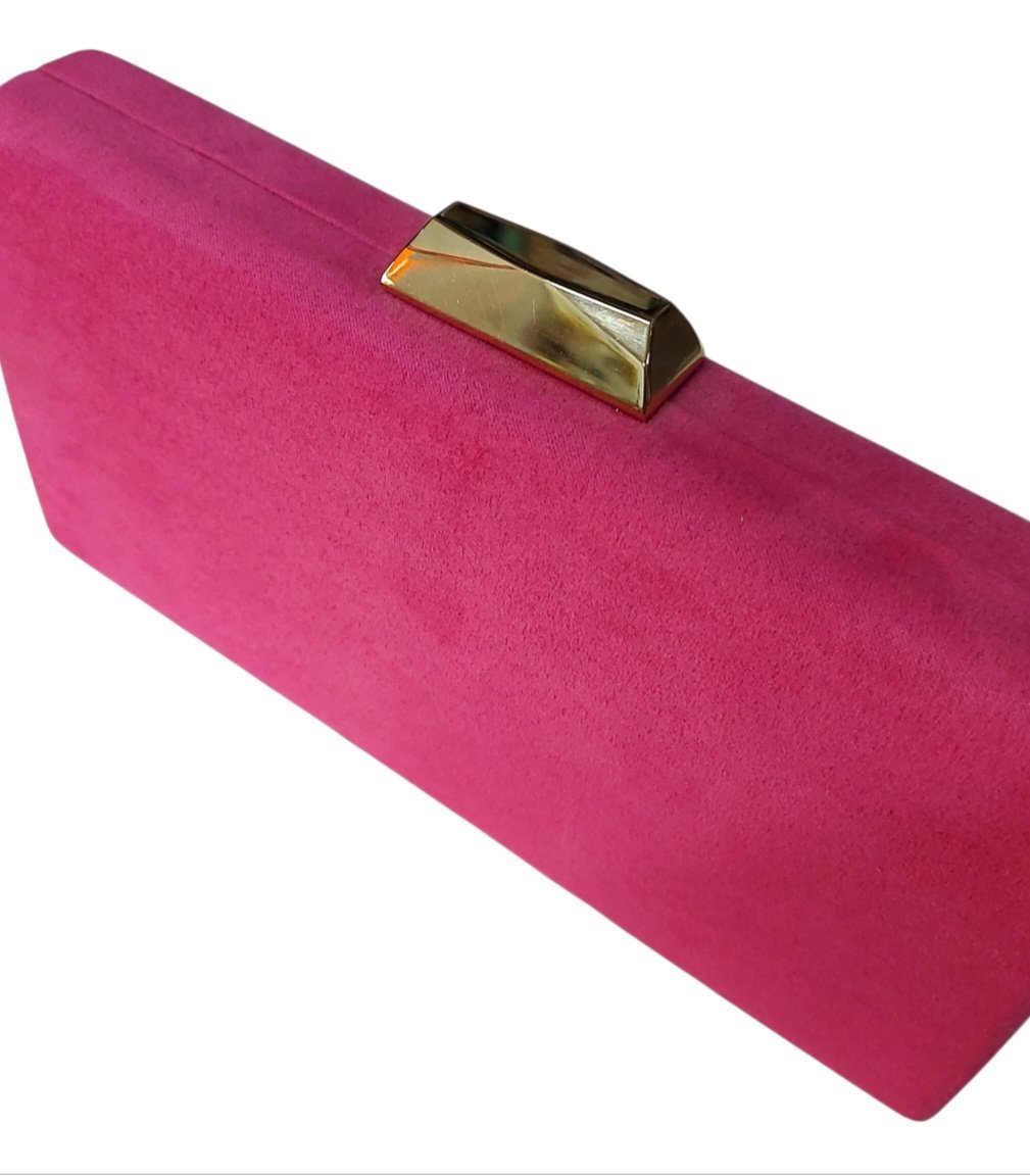 Precioso y elegante bolso de fiesta fucsia con cadenita para colgar y cierre dorado