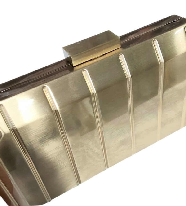 Precioso y elegante bolso de fiesta tipo clutch con cadenita para colgar, metálico disponible en color dorado