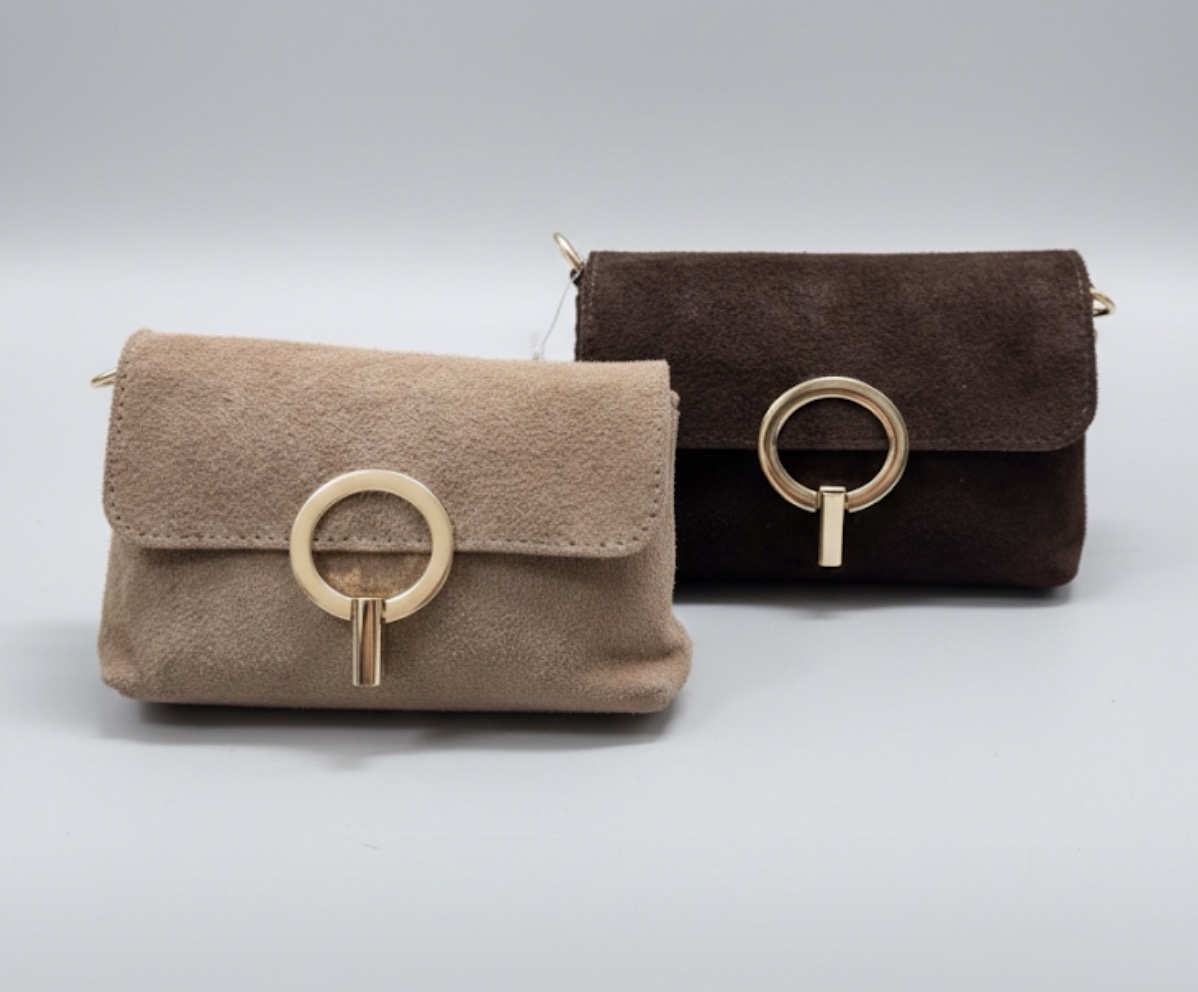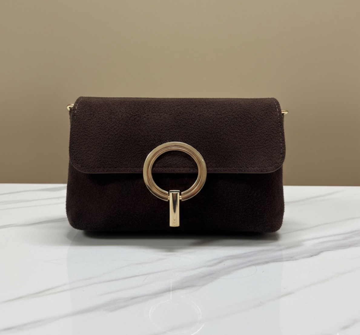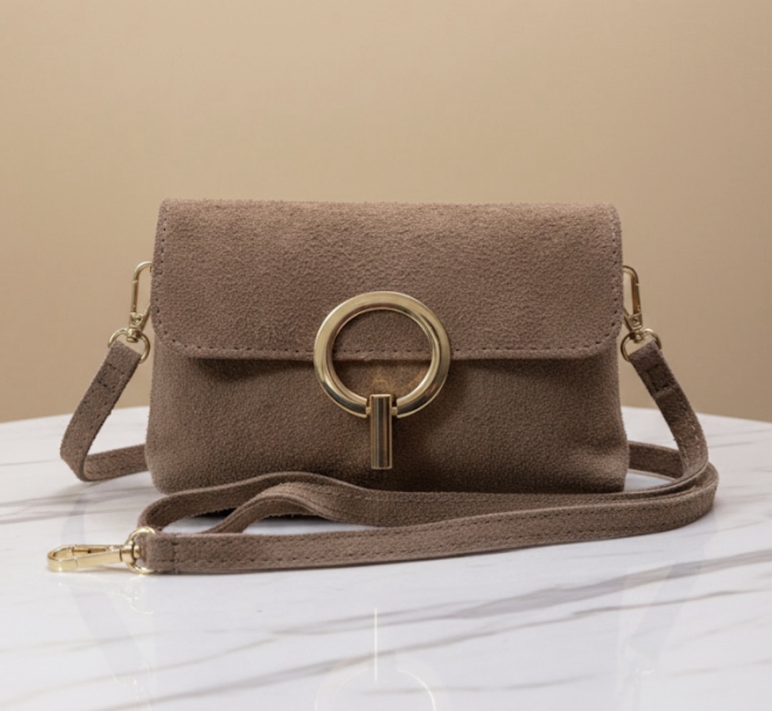 Este elegante bolso bandolera, confeccionado en piel, es el accesorio definitivo para quienes buscan un estilo sofisticado y minimalista. Destaca por su icónico cierre circular dorado pulido, que añade un toque de lujo contemporáneo a su diseño versátil, ideal tanto para eventos especiales como para elevar tu look diario. Su tamaño compacto y textura premium lo convierten en una pieza imprescindible, cómoda y atemporal que combina con todo tu armario.