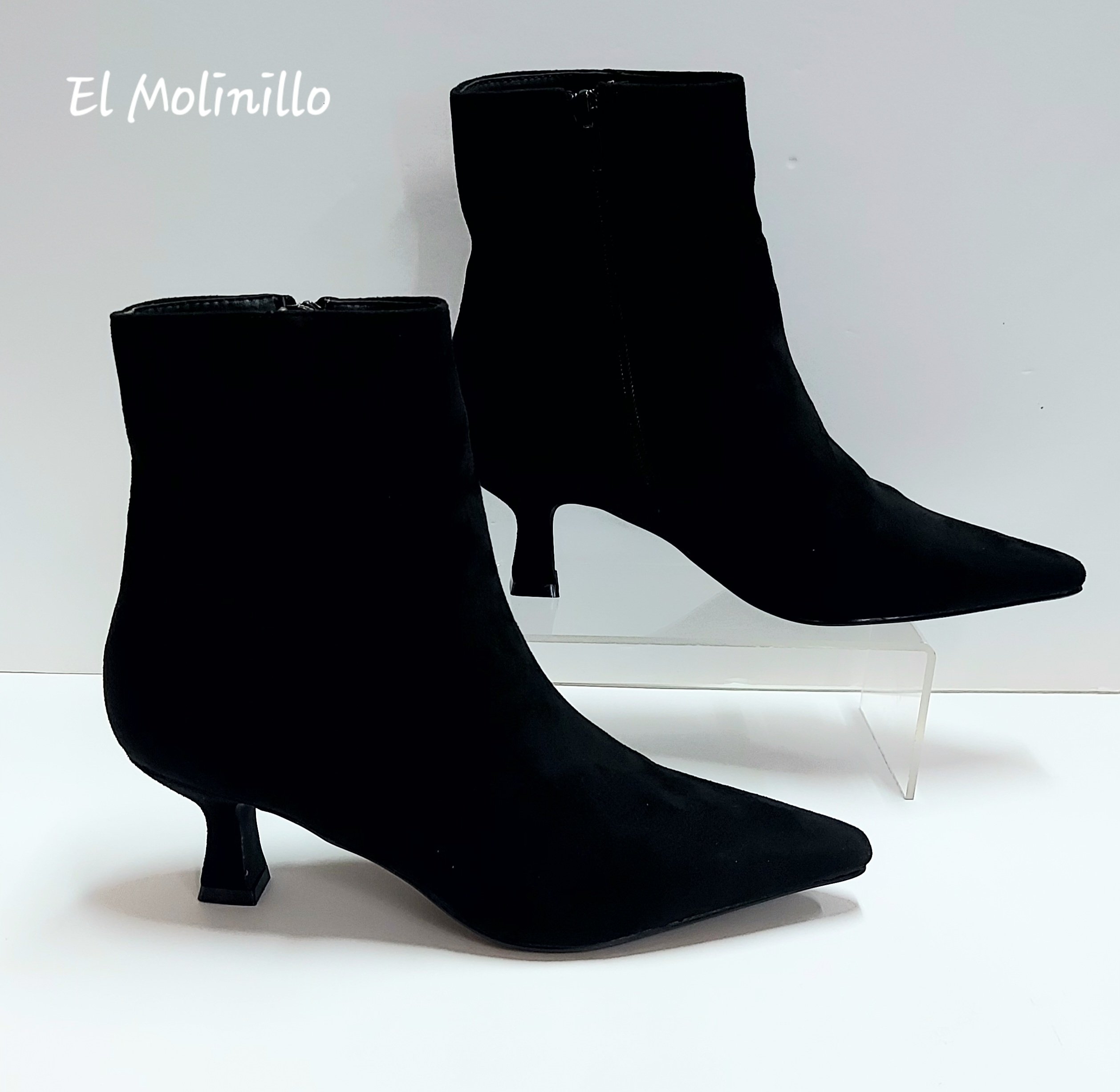 Botas serraje negras tacón bajo y cremallera lateral interior