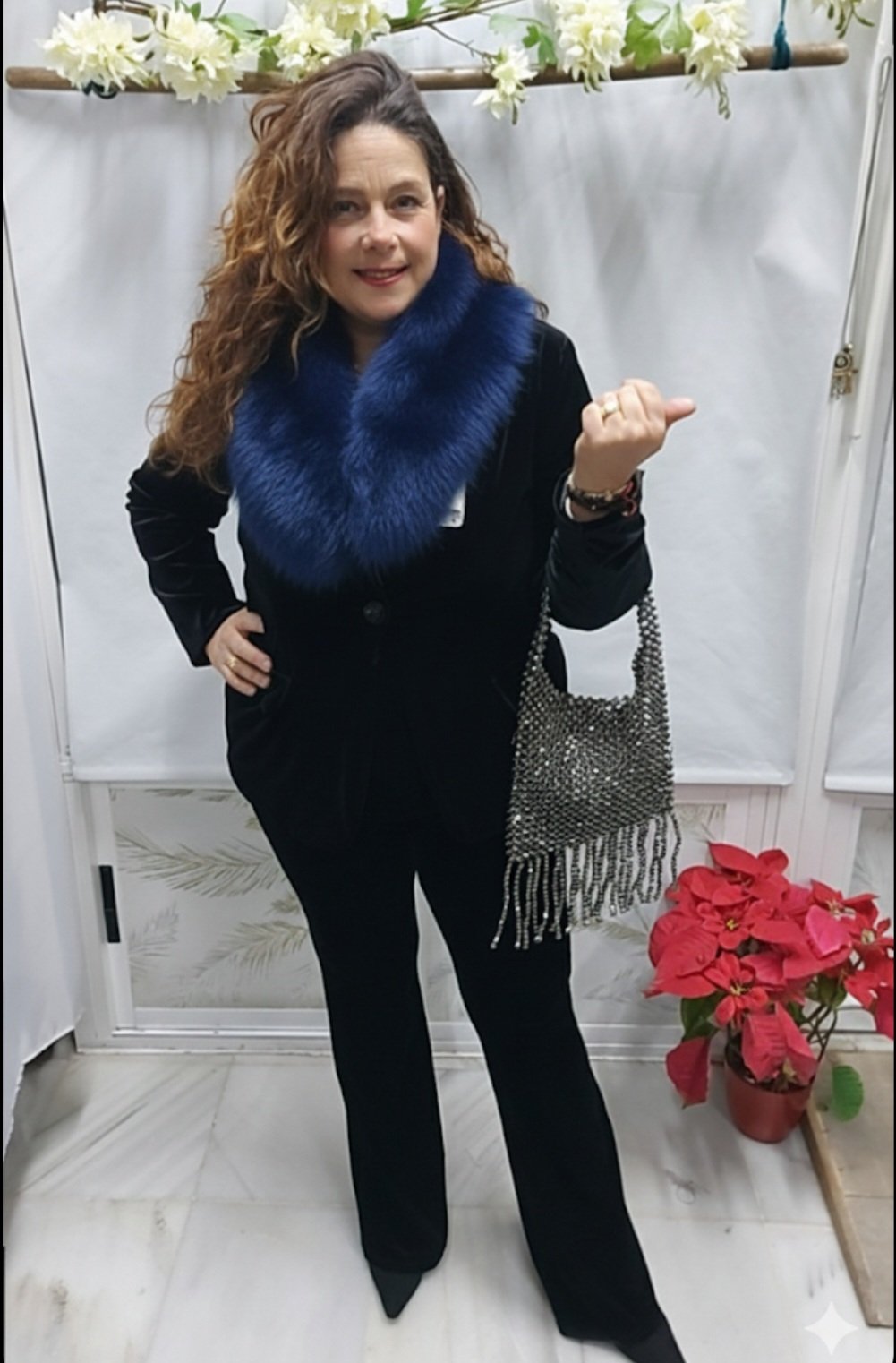 Este cuello de piel sintética esta diseñado para añadir un toque de elegancia y calidez a cualquier atuendo. Su textura es suave y voluminosa, y proporciona un aspecto lujoso sin el uso de piel real. Es un accesorio ideal para los meses más fríos, ofreciendo tanto moda como funcionalidad.